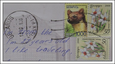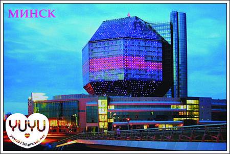 她說她27歲,住在白俄羅斯的首都(明斯克),明信片上的夜景是國家圖書館...